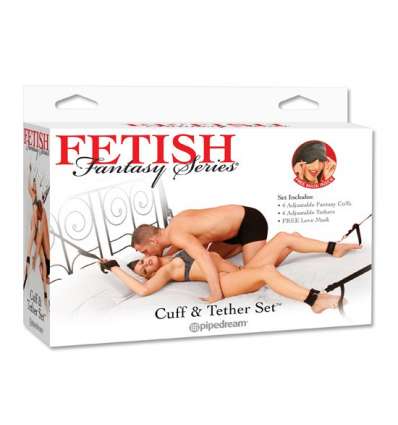 PIPEDREAMFETISH FANTASY CUFF AND TETHER SET, es un kit de bondage para utilizar en la cama, de la colección FETISH FANTASY SERIES.