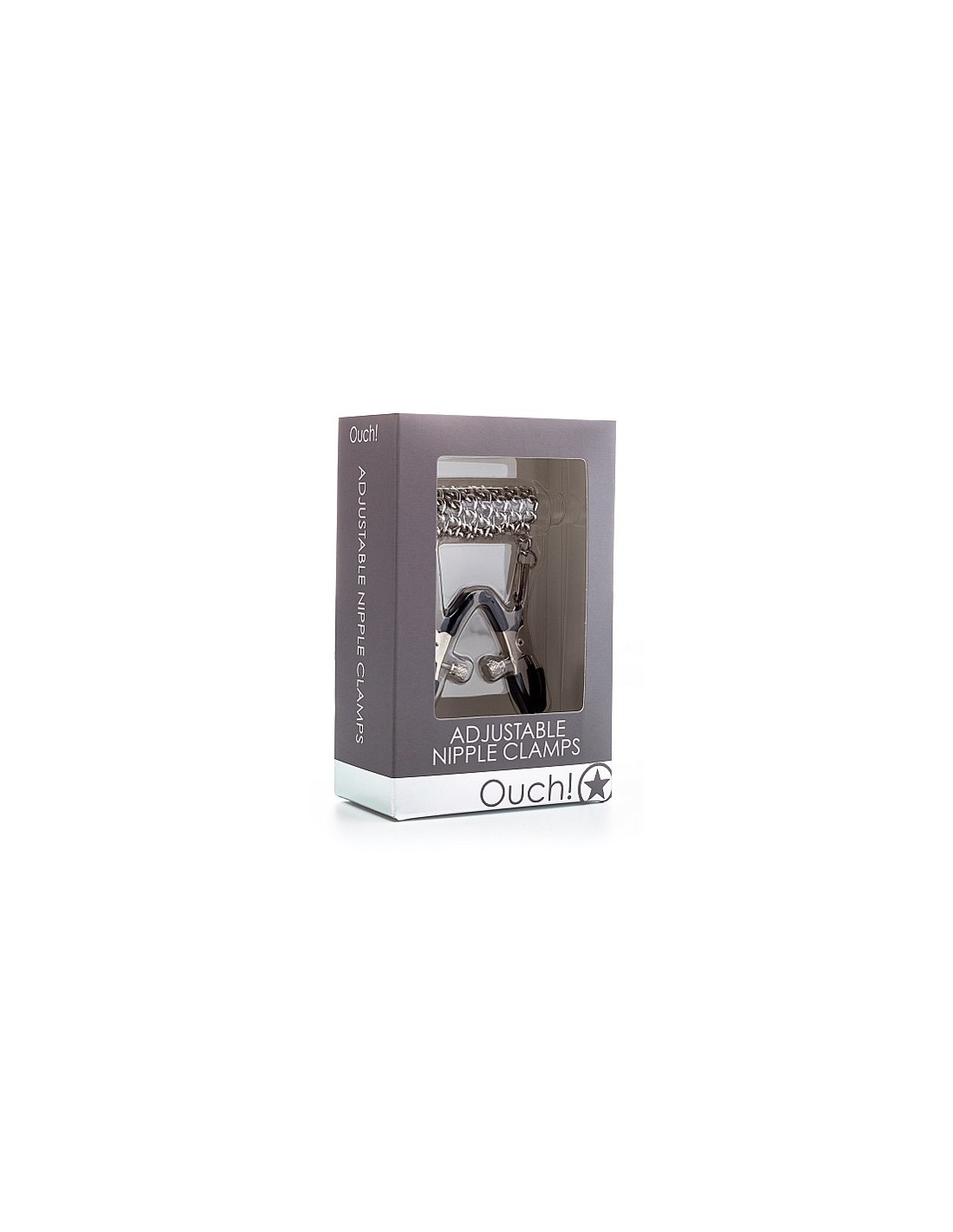 Estas pinzas para pezones con cadena de Ouch! son unisex y muy fáciles de utilizar. Las pinzas y la cadena se han elaborado con acero inoxidable y aluminio. No contienen níquel. Puede utilizar las pinzas para pezones para sus traviesos secretos o como complemento estimulador mientras penetra a su amante.