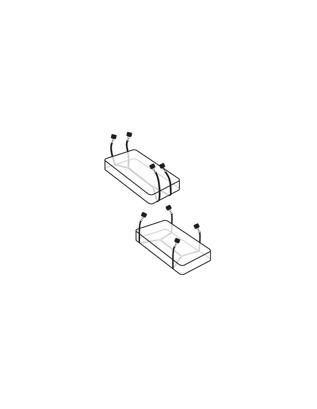 Transforme su cama en una zona de pasión, con estas correas que se ajustan a su colchón, abrén un mundo de posibilidades a su alcance. Experimenta la emoción de la esclavitud! Las correas de nylon conectan a 4 puños forrados de raso, que se ajustan fácilmente para sujetar al sumiso. Explora tus fantasías fetichistas más profundas!