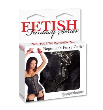 PIPEDREAMFETISH FANTASY FURRY CUFFS BLACK son unas esposas de muñeca de dos piezas unidas con una cadena de acero cromado, recubiertas con un suave peluche alrededor de los puños de color negro.