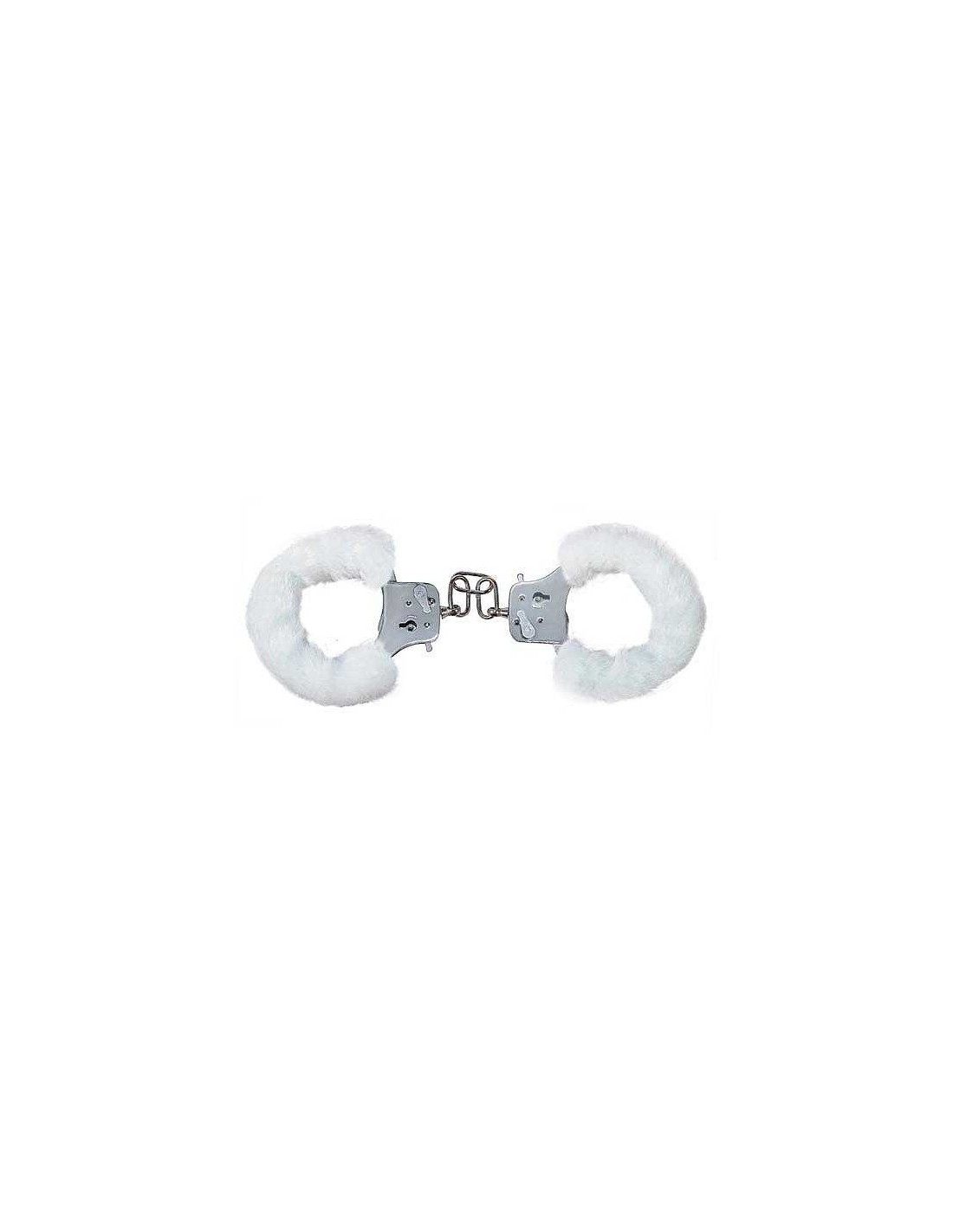 TOYJOYFURRY FUN CUFFS WELL TRAINED WHITE son unas esposas de muñeca de dos piezas unidas con una cadena de acero cromado, recubiertas con un suave peluche alrededor de los puños de color blanco.