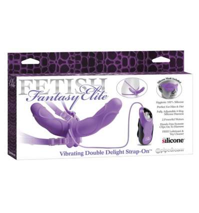 PIPEDREAMFETISH FANTASY ELITE VIBRATING DOUBLE DELIGHT STRAP-ON PURPLE.
