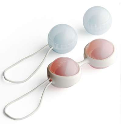 Fabricado con plástico ABS/silicona aprobados por la FDA y libres de ftalato, este juego de cuatro bolas (dos de 28 gramos y dos de 37) está diseñado para aumentar la fuerza y la resistencia de los músculos de la vagina y del suelo pélvico.