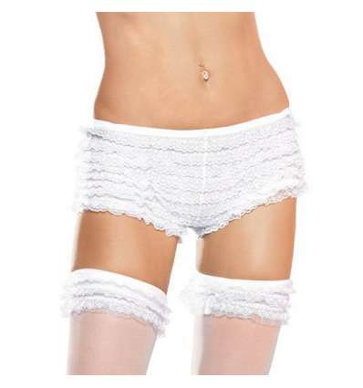 LEG AVENUE WHITE MICROMESH LACE RUFFLE TANGA SHORTS