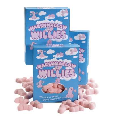 SPENCER FLEETWOOD MARSHMALLOW WILLIES . Nubes dulces azucaradas en forma de pene. Información alergias: Puede contener trazas de leche o soja. 140 gr. ... envío gratuito a partir de 50 euros, entrega en 24 horas, marca: SPENCER FLEETWOOD, categoría: COMESTIBLES