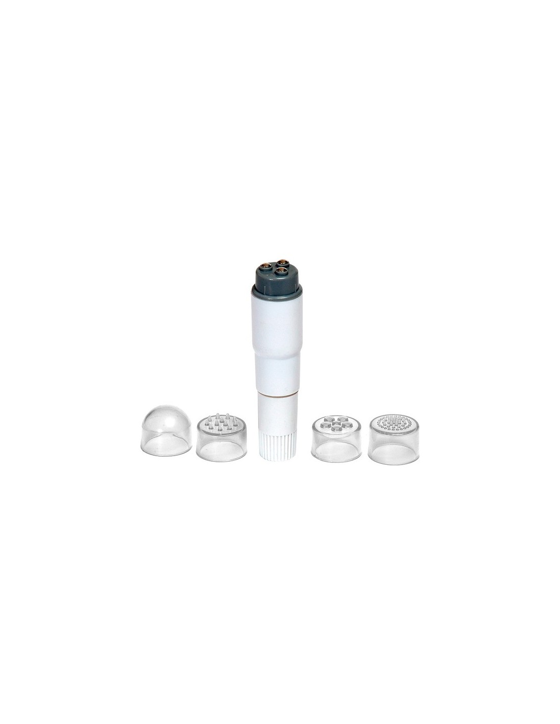 Este vibrador, con cuatro accesorios intercambiables, se ajusta a cualquier estado de ánimo que tengas. Puedes utilizar este vibrador simplemente para divertirte o para conseguir una estimulación genial. Prueba todos y elije tu favorito.