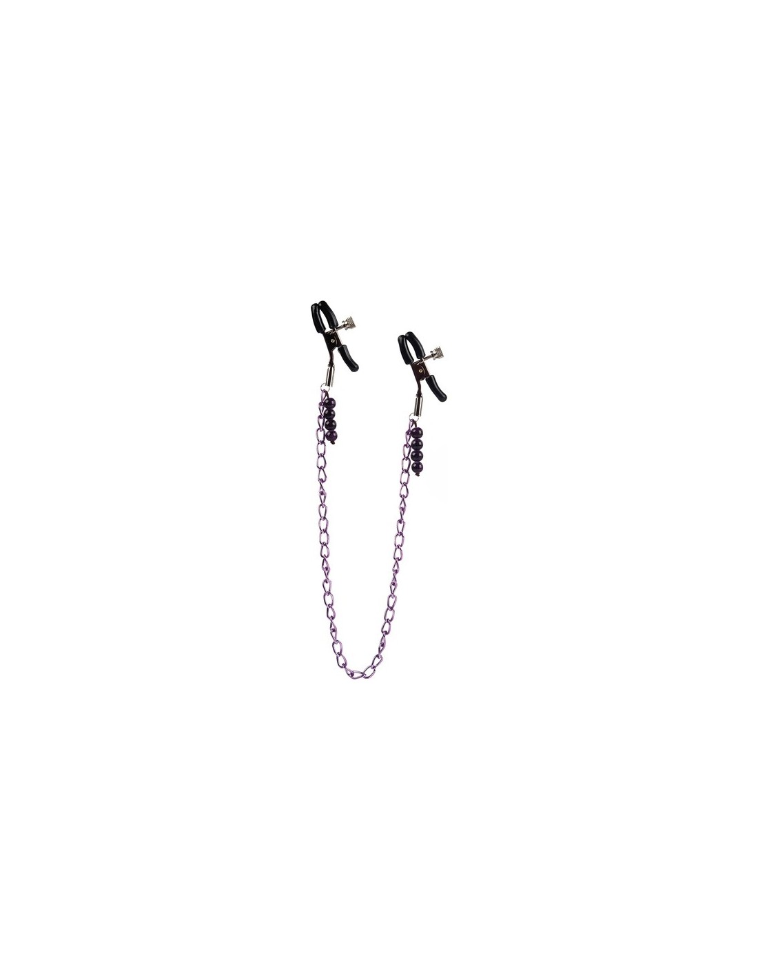 CALEXOTICSCHAIN NIPPLE CLAMPS PURPLE son un par de pinzas estimuladoras de pezones seguras, confortables y fáciles de usar.
