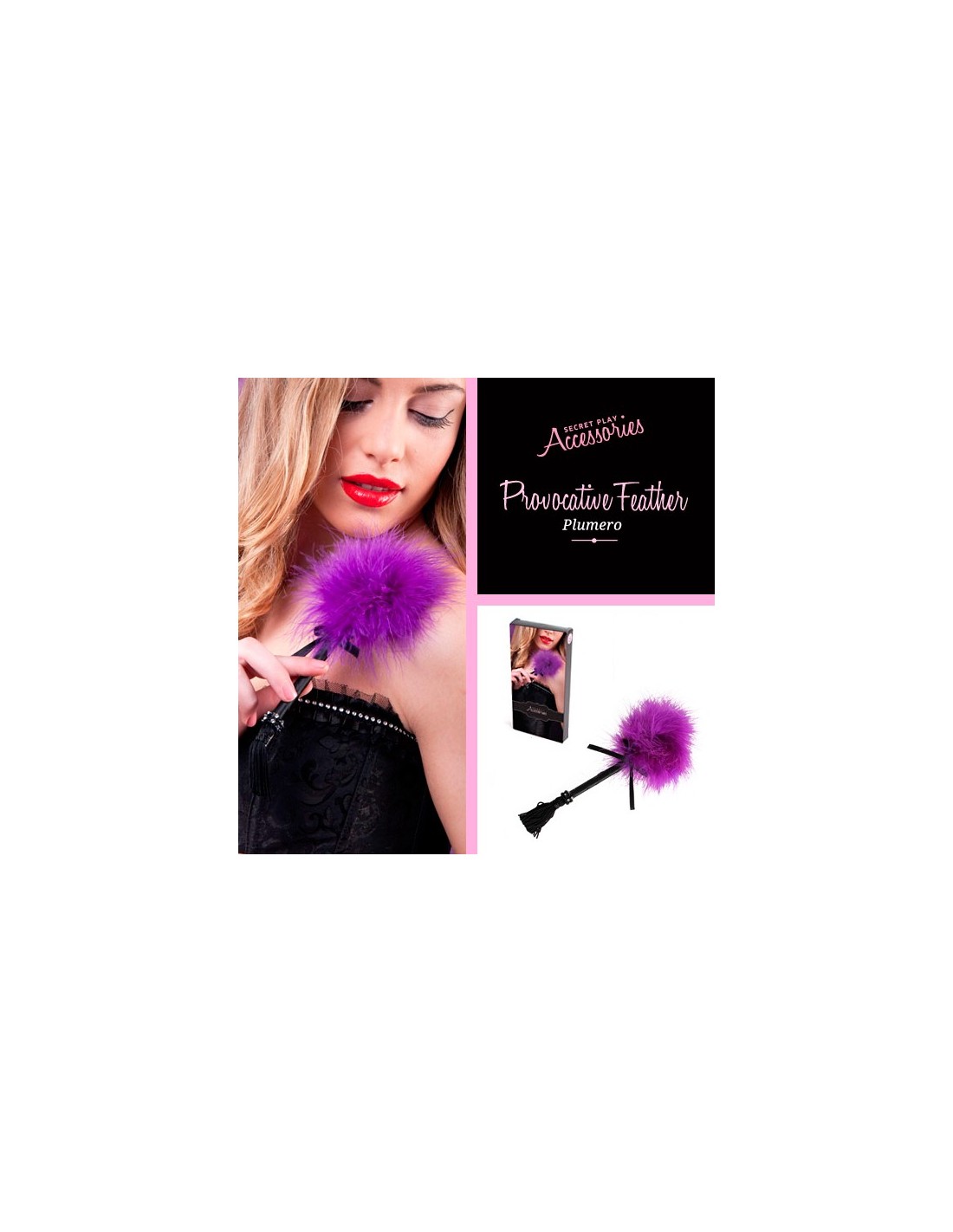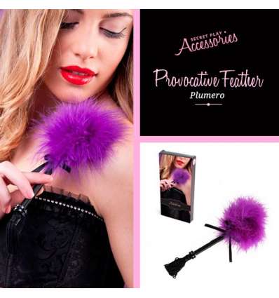 PLUMERO MARABU SECRET PLAY MORADO.Fantástico estimulador de pluma, para despertar el erotismo en tu pareja. Enseña tus armas de seducción. Puedes añadir una máscara para aumentar la fantasía.Medidas: 17 x 0,5 cm
