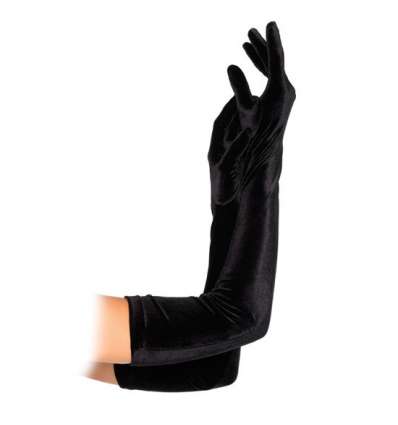 LEG AVENUE VELVET OPERA LENGTH GLOVES BLACK.