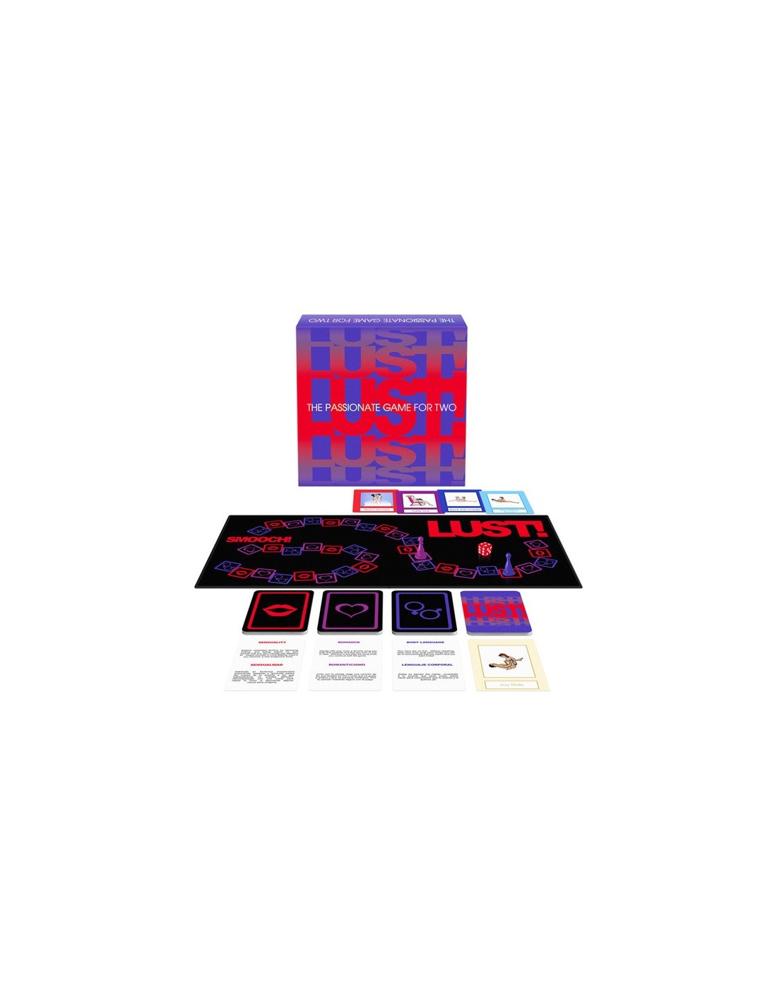 Explora tus fantasías eróticas junto a tu amante con el juego de la lujuria! Perfecto para parejas que buscan diversión. Un gran juego de tablero que te lleva por un camino de descubrimientos, solamente tira el dado y sigue tu camino. Encuéntrate a ti mismo compartiendo y actuando tanto con indulgencias románticas, como picantes. Incluye 100 tarjetas que se corresponden con los dibujos que encontrarás en el camino pudiendo ser de Romance, Sensualidad, Lenguaje corporal, o la variedad de posturas para hacer el amor. A medida que avances, tu y tu compañero de juego construiréis una fantasía de principio a fin, mientras que descubrís y exploráis todo tipo de caprichos y detalles que no habrías descubierto el uno del otro. Lust! se puede jugar una y otra vez, porque dispone de 30.000 posibilidades diferentes, por lo que será muy difícil repetir!