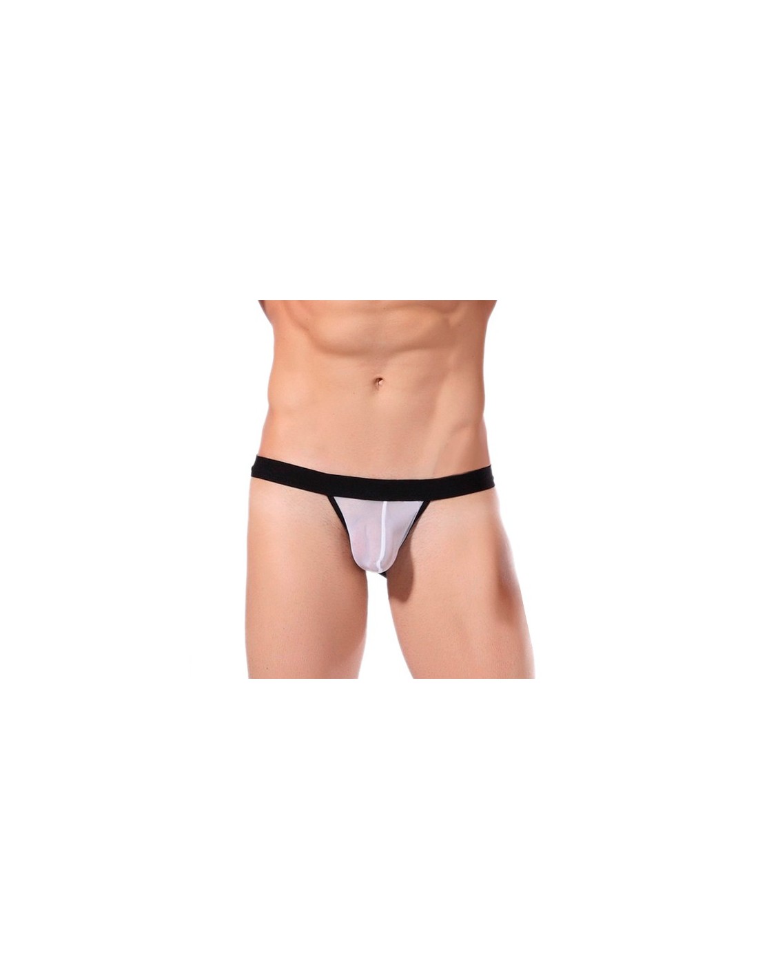 Suspensorio de color blanco combinado con negro. La cintura es ancha y elástica para acomodarse a tu cuerpo.