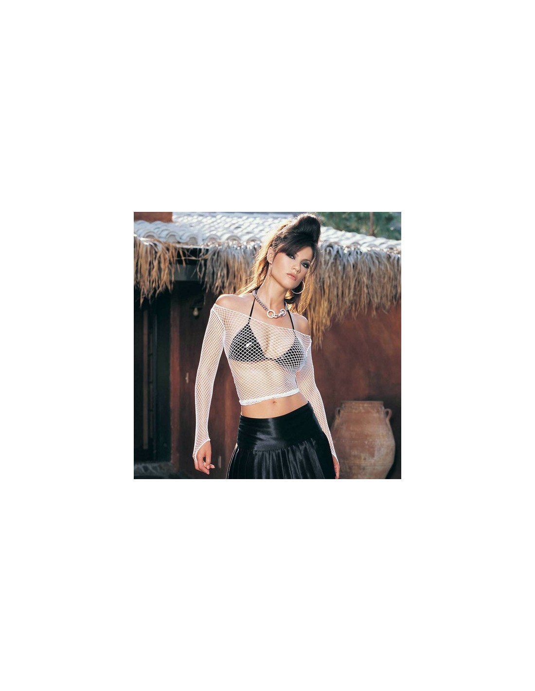 Fantástica camiseta de manga larga de red de estilo industrial en color blanco. La podrás utilizar debajo de tu ropa, o como prenda única a juego con un sujetador sexy. No podrás esperar para lucirla con tus pantalones favoritos o sola si la situación lo requiere...
