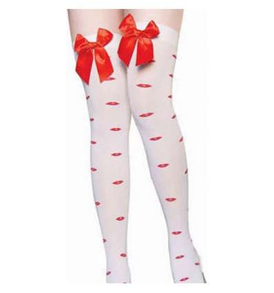 Medias lazo rojo estampadas blanco
