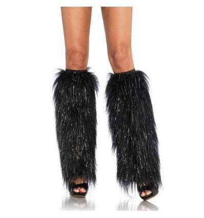 LEG AVENUE FURRY LUREX LEG WARMERS BLACK AND SILVER, son unos maravillosos calentadores de piernas peludos en color negro y plata.