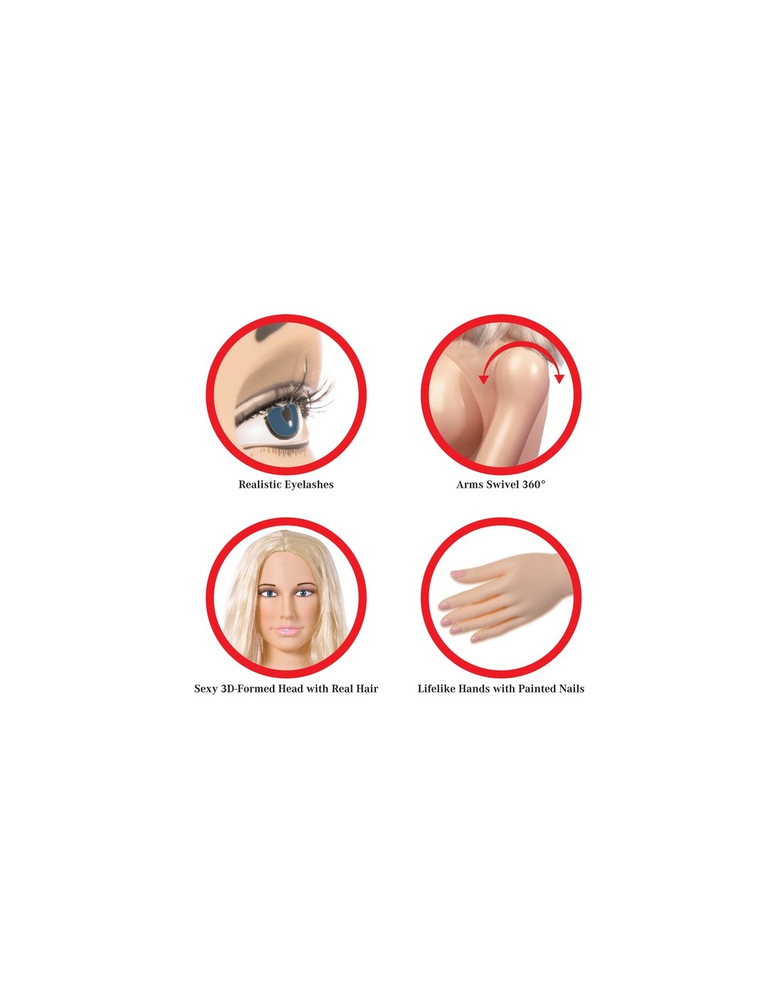 Esta increíble muñeca de tamaño natural del amor fue meticulosamente diseñado con características realistas para una experiencia verdaderamente realista. Su atractivo rostro 3-D moldeado se remata con una lujosa cabellera que está pidiendo ser retirada. Con pechos turgentes y sus pezones super-suaves y reales. Con vagina y súper apretado realista culo.