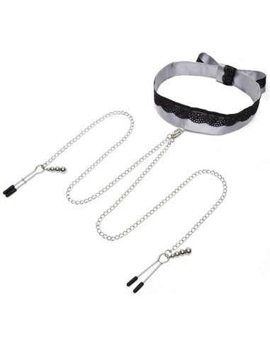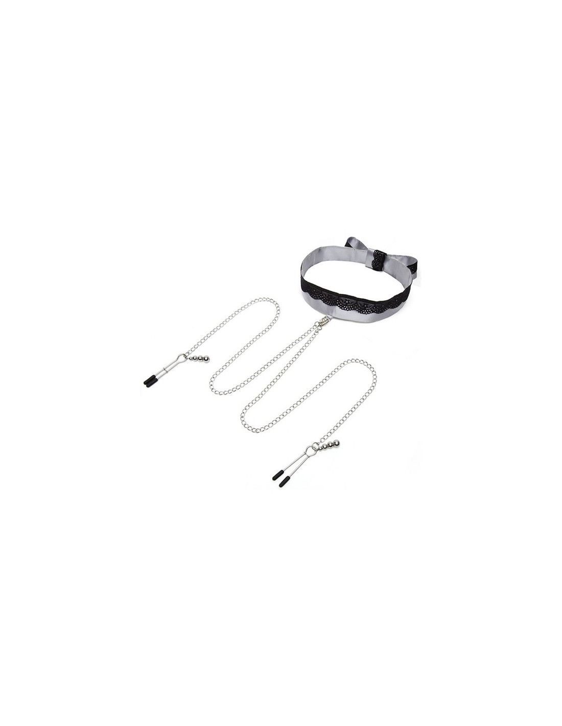 FIFTY SHADESPLAY NICE SATIN AND LACE COLLAR AND NIPPLE CLAMPS - BLACK