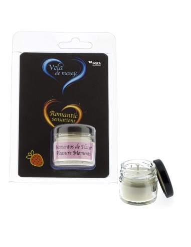 - Esta vela de masaje encenderá tus sentidos con los aromas más sensuales y te deleitará además con un cálido aceite para masajear a tu pareja.