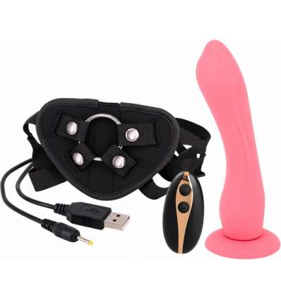Consolador con vibración de 18,5 cm con arnés Stap-On.